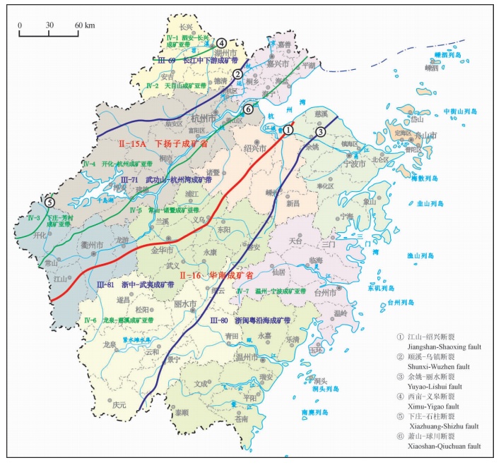 浙江省Ⅳ級(jí)成礦亞帶